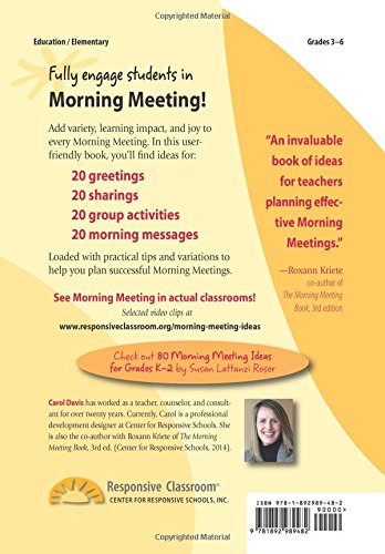 80 Morning Meeting Ideas For Grades 3 6 Davis Carol 9781892989482 Elementary Education Amazon Canada
